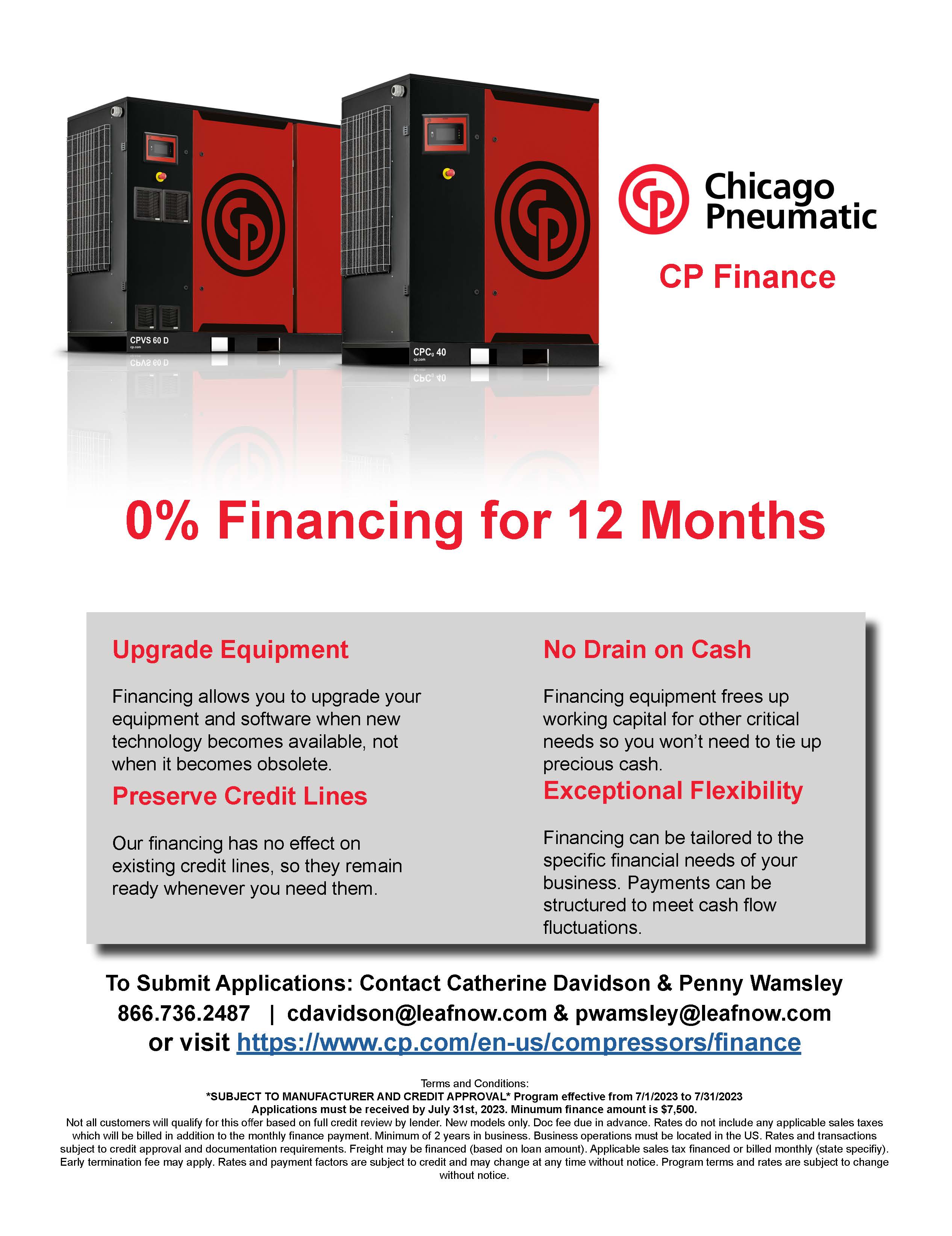 Think financing is just another way to pay for your Chicago Pneumatic solution? Join businesses across the country and tap into the real power of financing with CP Finance Powered by LEAF.