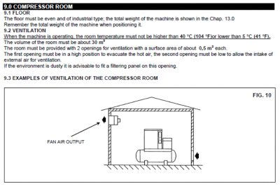 압축기실은 새 구역을 건설하거나 기존 위치를 재사용할 때 시설의 마지막 부분으로 고려되는 경우가 많습니다. 공기 컴프레서는 작동 시 상당한 양의 열을 생성하기 때문에 적절한 환기가 이루어져야 합니다.